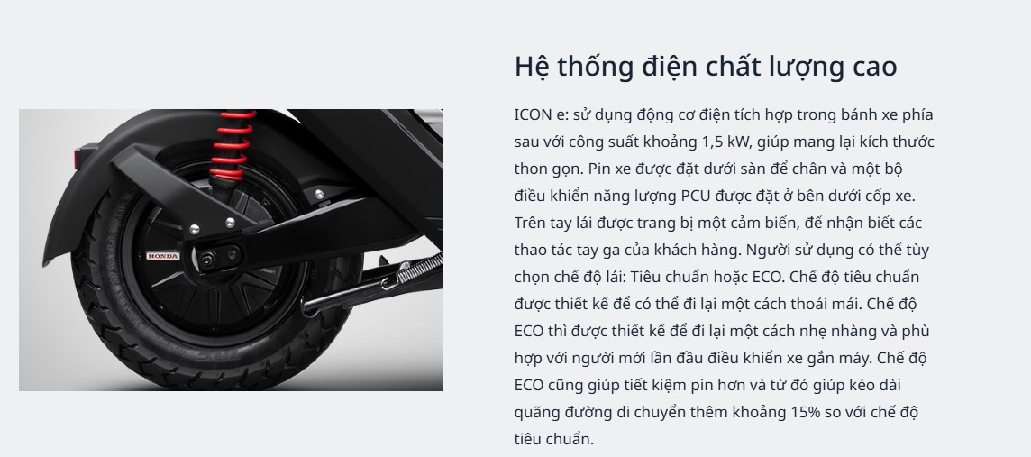 Mẫu xe gắn máy điện ICON e: lần đầu tiên được Honda giới thiệu tại thị trường Việt Nam, với thiết kế cao cấp và nhỏ gọn, nhiều tiện ích cùng công nghệ hiện đại, là người bạn đồng hành cho các bạn trẻ trong thời đại mới.